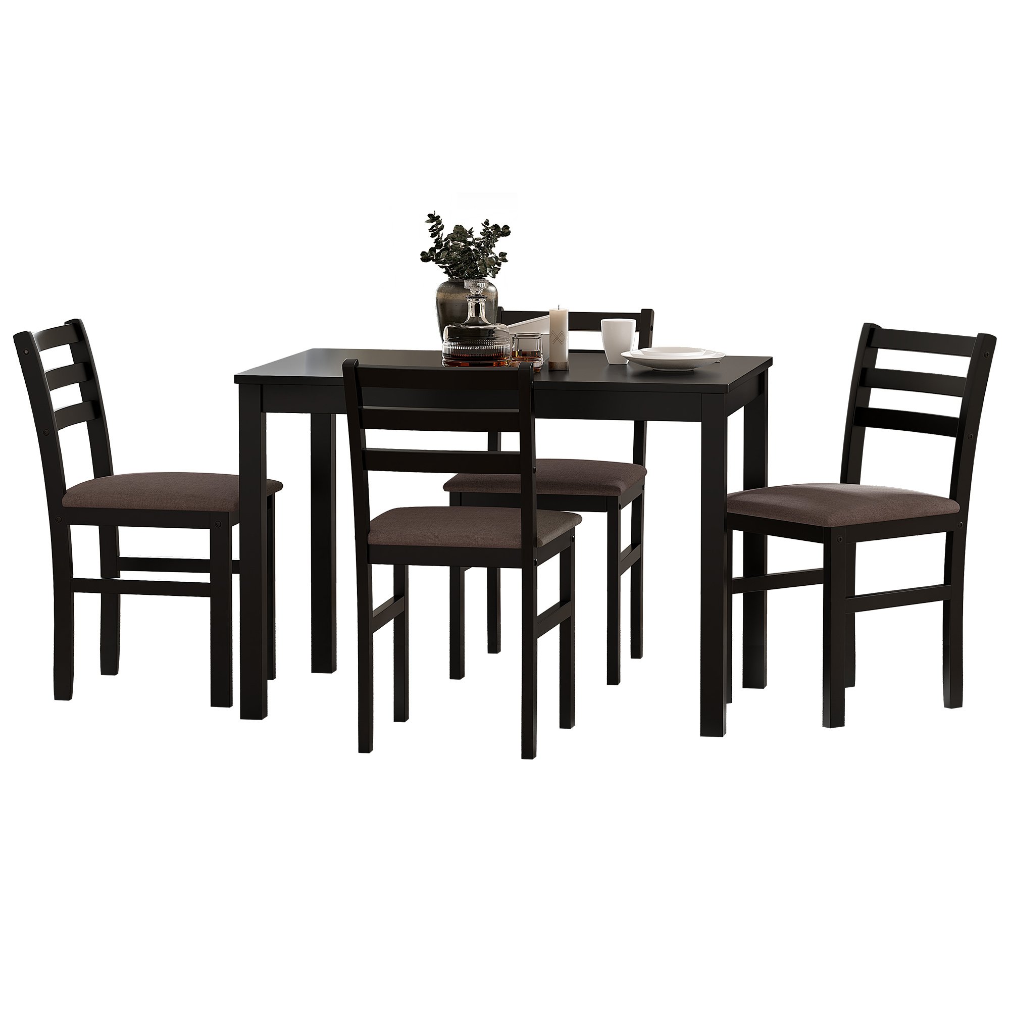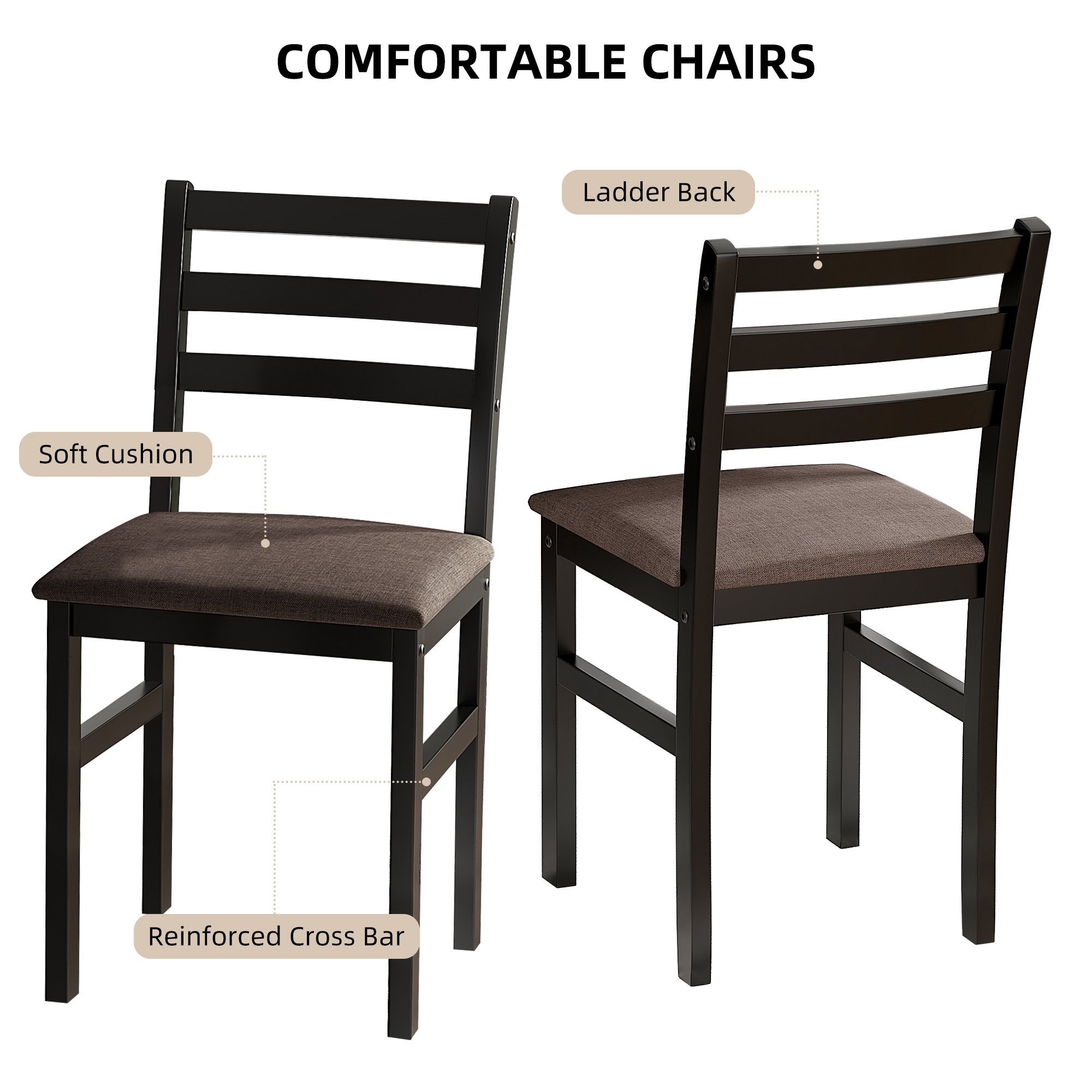 Home > 5PCS Stylish Dining Table Set 4 Upholstered Chairs with Ladder Back Design for Dining Room Kitchen Brown Cushion and Black (=OLD SKU:W69177433)