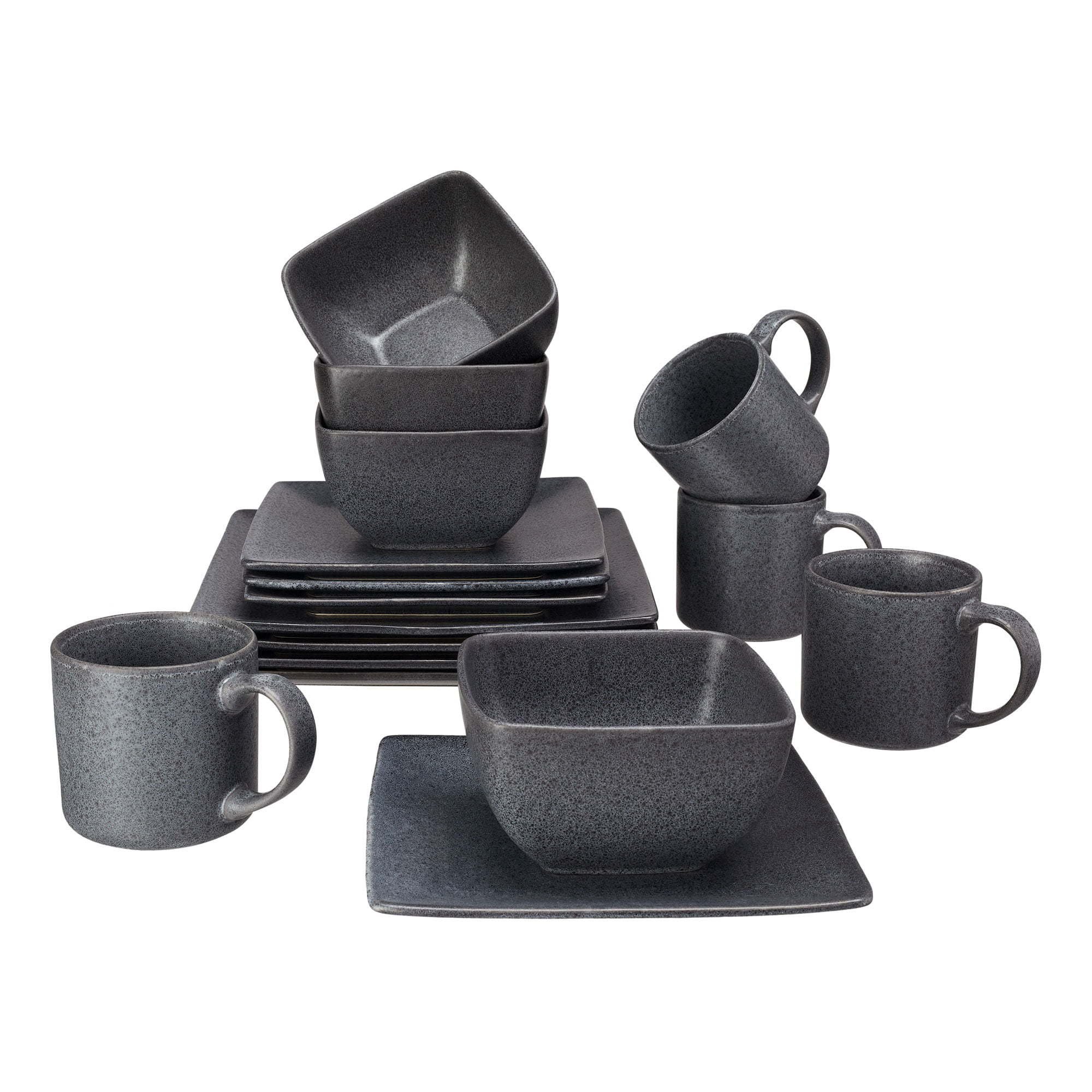 Better Homes & Gardens- Dark Gray Square Stoneware 16-Piece Dinnerware Set