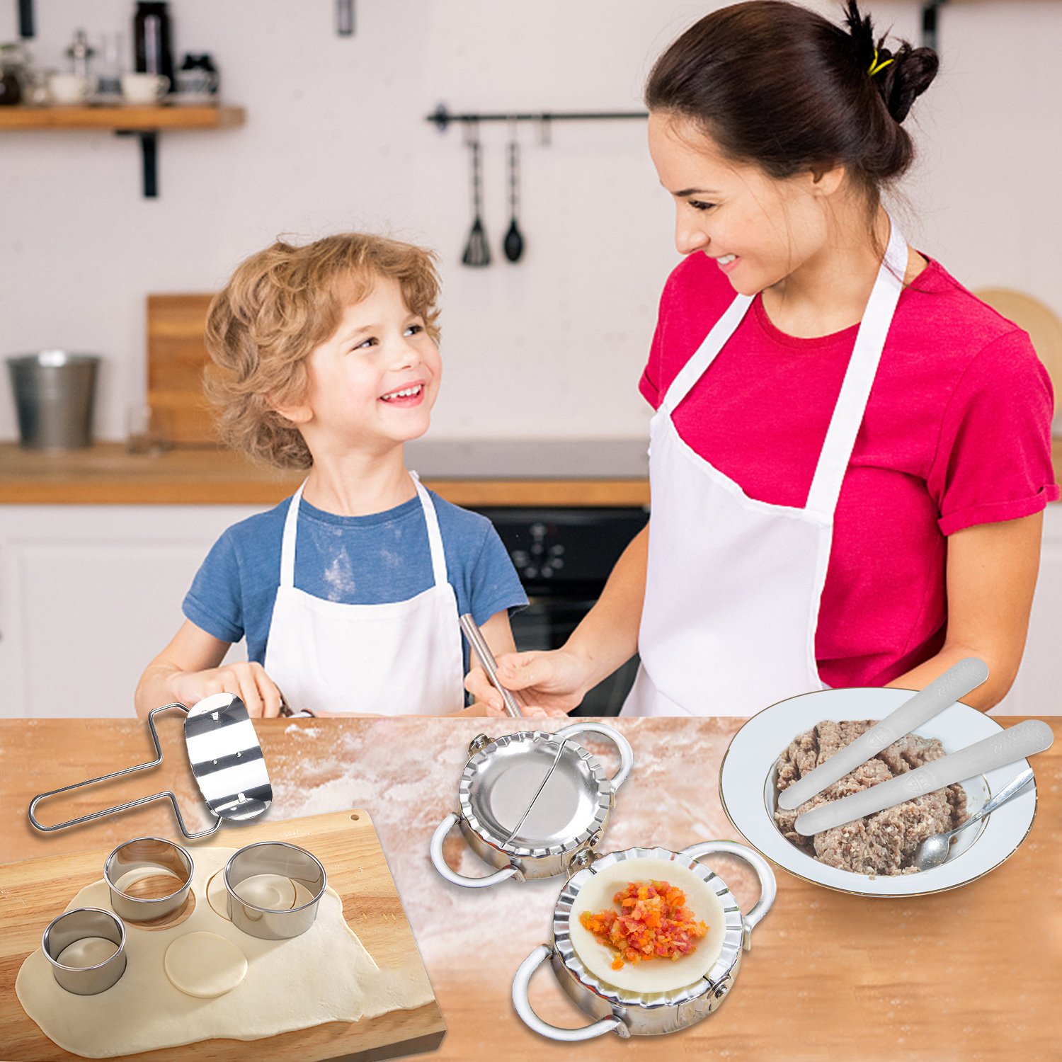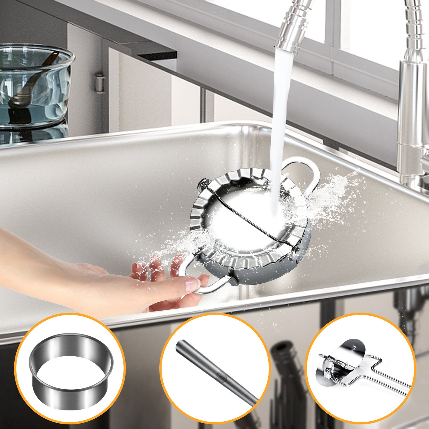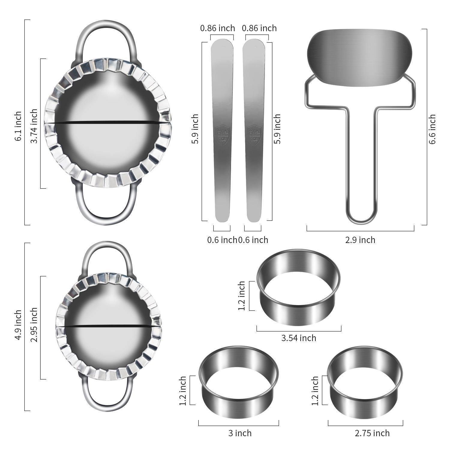 1.[Dumplings Maker Features]The Dumplings Maker Set is made of stainless steel durable long time lasting; easy to use and easy to clean; just flush the flour with water.