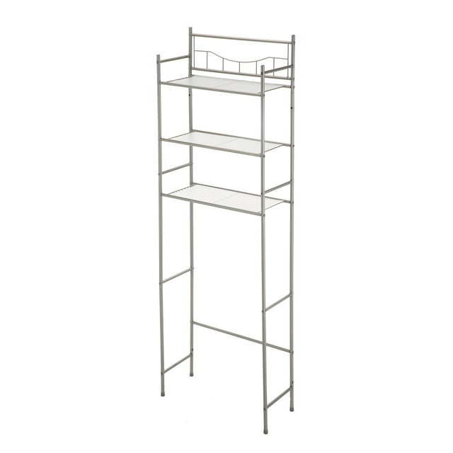 Over the Toilet Steel 3-Shelf Storage Shelf Unit, Satin Nickel Finish for Adults