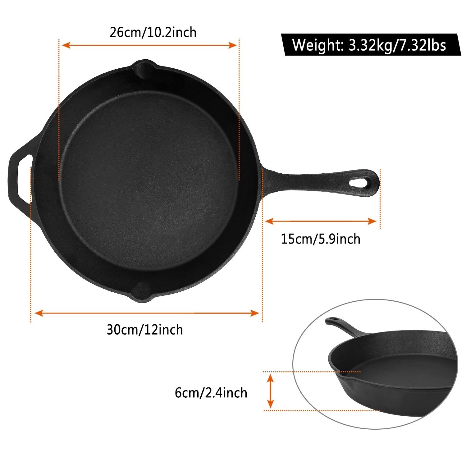 Home > Pre-Seasoned Cast Iron Skillet Oven Safe Cookware Heat-Resistant Holder 12inch Large Frying Pan