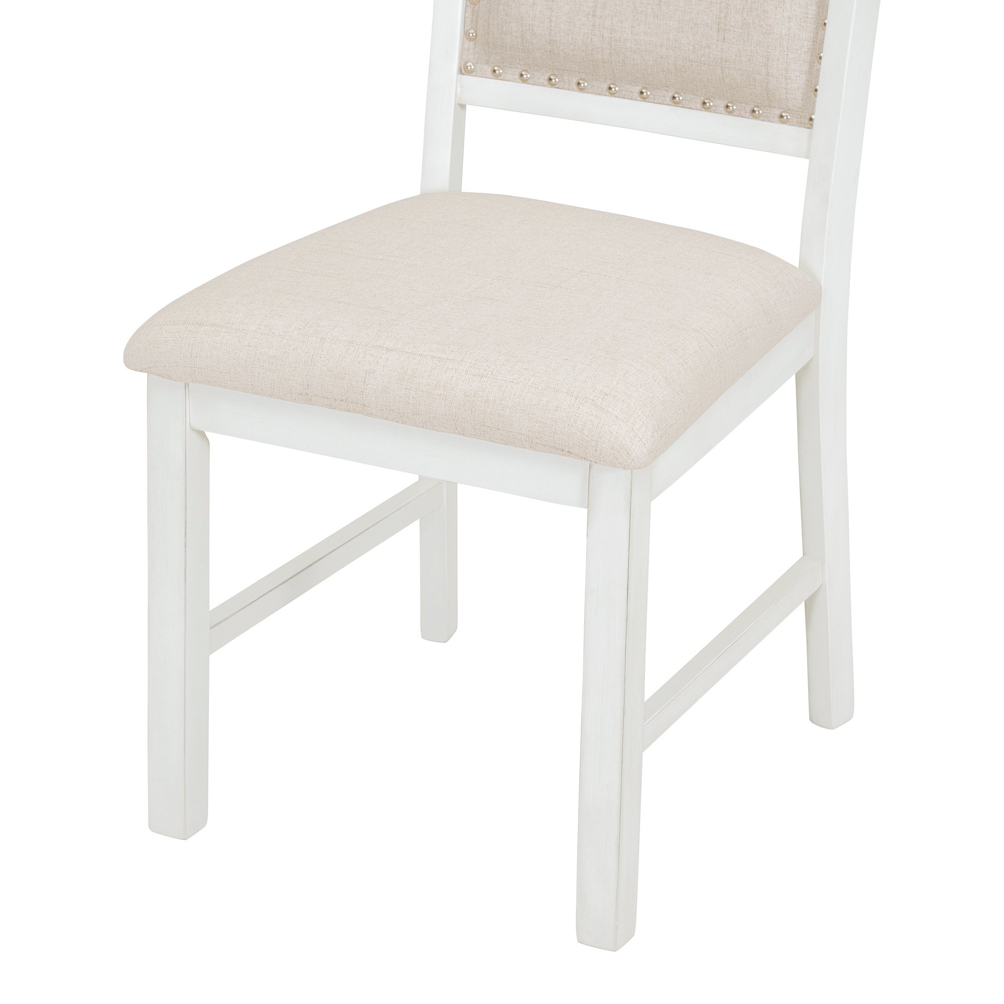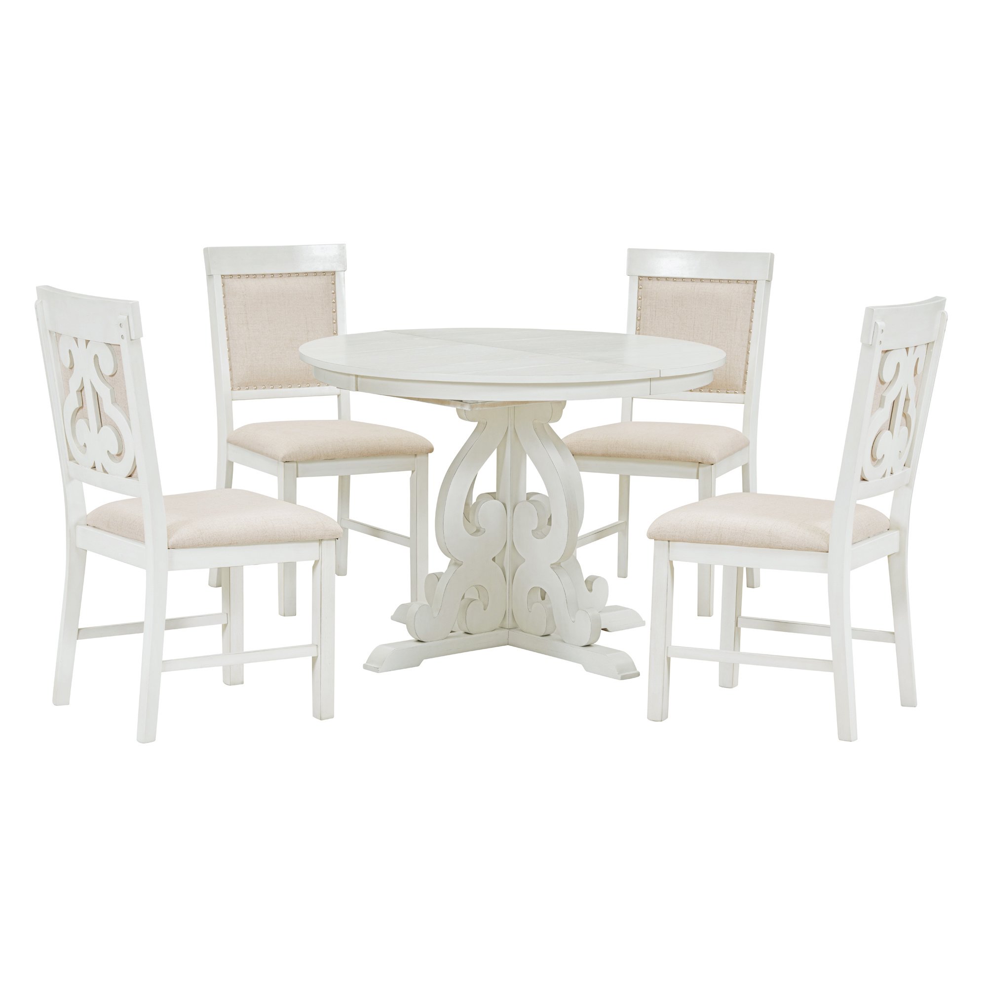 TREXM 5-Piece Retro Functional Dining Set, 1 Extendable Table with a 16-inch Leaf and 4 Upholstered Chairs for Dining Room and Kitchen (Antique White)